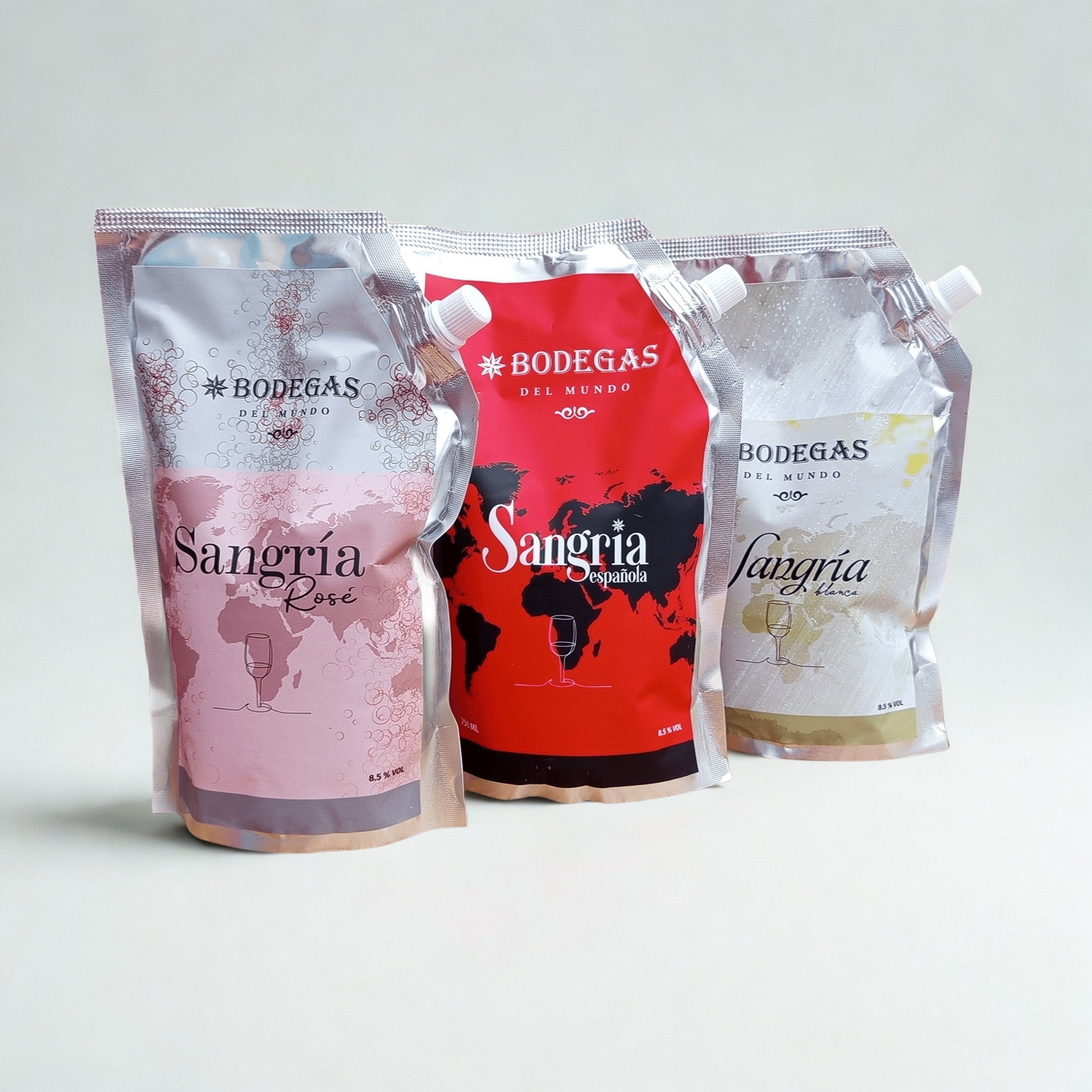 Sangrías artesanales listas para servir, elaboradas con vino y frutas seleccionadas. Vienen en envase DoyPack de 750ml, una opción práctica, ligera y fácil de almacenar.
